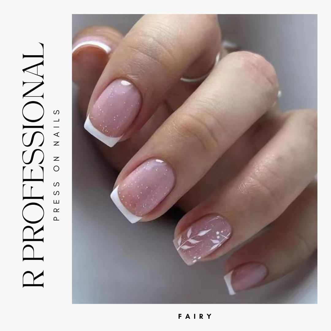 Soft, sparkly, and full of enchantment—Fairy is your magical manicure moment. This delicate set features sheer pink shimmer, classic white French tips, and a whimsical leafy accent. Ideal for fairycore lovers, bridesmaids, and anyone who believes in a bit of magic.