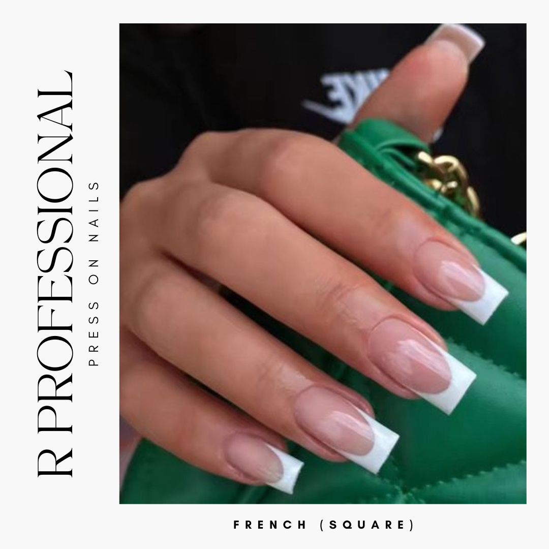 R PROFESSIONAL Press-On Nails – 24-Piece Set – French Square