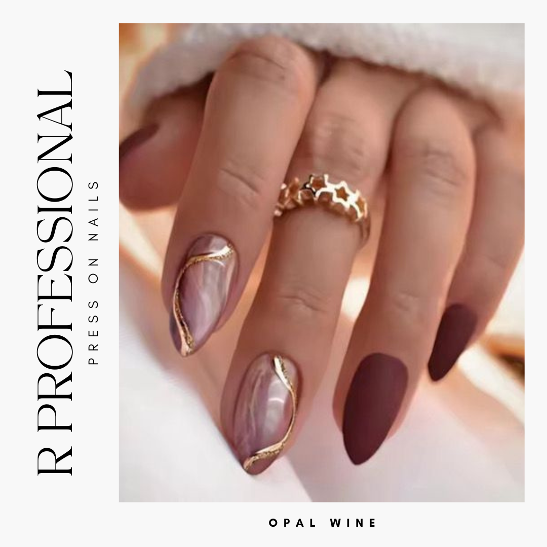 R PROFESSIONAL Press-On Nails – 24-Piece Set – Opal Wine