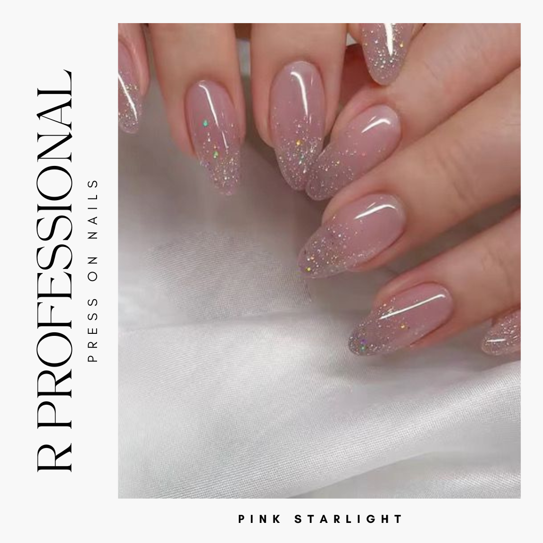 R PROFESSIONAL Press-On Nails – 24-Piece Set –Pink Starlight.